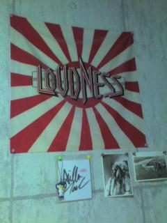 バンド旗の下にかかっているサインは、LOUDNESSのギタリスト、高崎晃氏のものです。